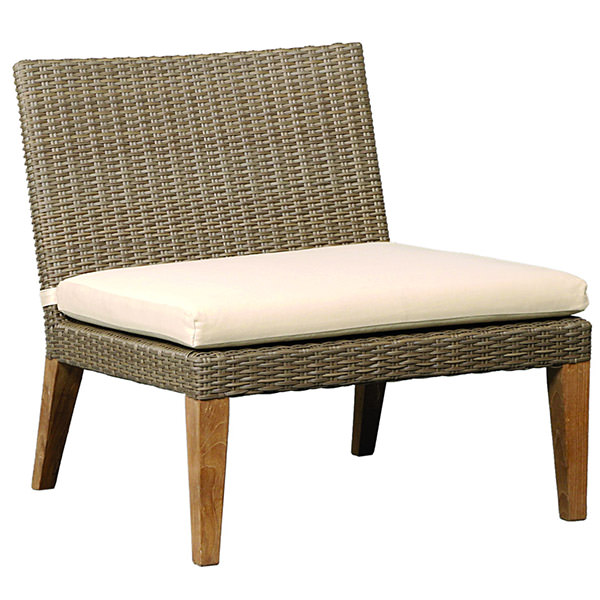 The Wide Synthetic Rattan Armchair with Teak Wood Legs and Arms is a blend of natural elegance and modern durability. With its sturdy teak wood frame and arms, paired with a comfortable synthetic rattan seat and back, this armchair offers both style and resilience. A comfortable mattress is included, making this a cozy addition to any indoor or outdoor setting.